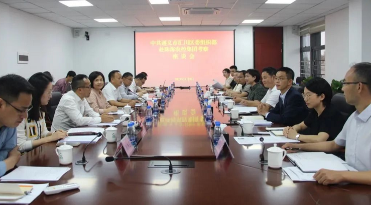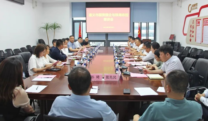 近日,遵义市汇川区委常委、组织部部长张宗勤一行到平博在线集团开展干部挂职交流对接活动。农控集团副总经理肖军、集团相关部室、下属食出公司、物流园菜篮子公司相关领导参加座谈会。