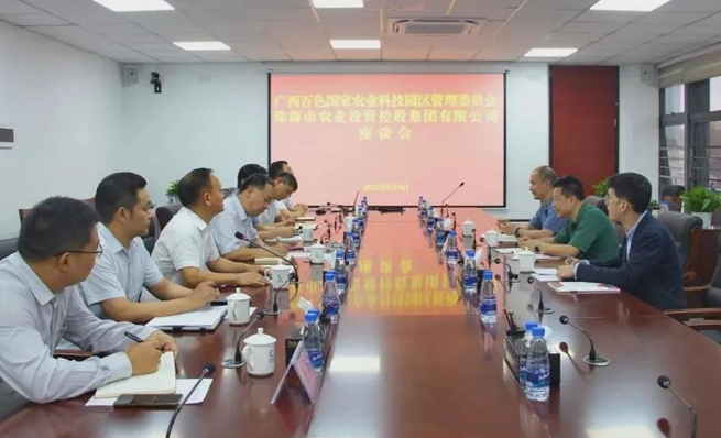 5月9日上午,广西百色国家农业科技园区管理委员会主任王晓一行到平博在线农产品物流园调研参观并在农控集团会议室交流座谈。农控集团党委书记、董事长张凡,副总经理肖军参加座谈会。