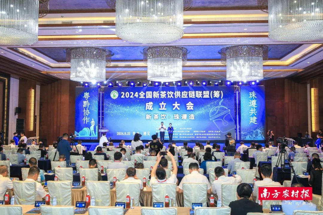 拓展茶饮新赛道,深挖消费新潜力,打造协作新标杆。9月25日,2024全国新茶饮供应链联盟(筹)成立大会在遵义市湄潭县举行。会上,珠遵新茶饮研究院暨战略咨询专家委员会、全国新茶饮供应链联盟(筹)揭牌,标志着珠遵两地共同打造的新茶饮供应链产业新生态迈出关键步伐,助力全国新茶饮供应链提质升级和新茶饮产业高质量发展。中国工程院院士、湖南师范大学校长、湖南农业大学学术委员会主任刘仲华,贵州省人大常委会原副主任、贵州省茶文化研究会会长傅传耀,贵州省农业农村厅二级巡视员杨绍武,珠海市副市长黄振球,遵义市副市长吴起,湖南农业大学副校长谢方平,遵义市湄潭县委书记、县人民政府县长游海燕,平博在线集团党委书记、董事长李鸿斌出席活动。