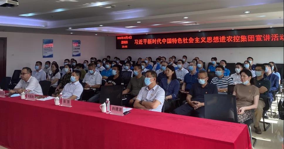 为深入学习贯彻习近平总书记在庆祝中国共产党成立100周年大会上的重要讲话精神,进一步推动集团党史学习教育走深走实,2021年10月15日下午,农控集团党委邀请市委宣讲团成员曹诗友同志为集团党员干部作题为《新时代中国共产党人的政治宣言和行动纲领》的宣讲。集团党委书记张凡同志、集团领导班子成员、各基层党支部书记、党务工作者、各二级企业班子成员和党员代表80余人参加会议。会议由集团党委副书记刘国涛同志主持。