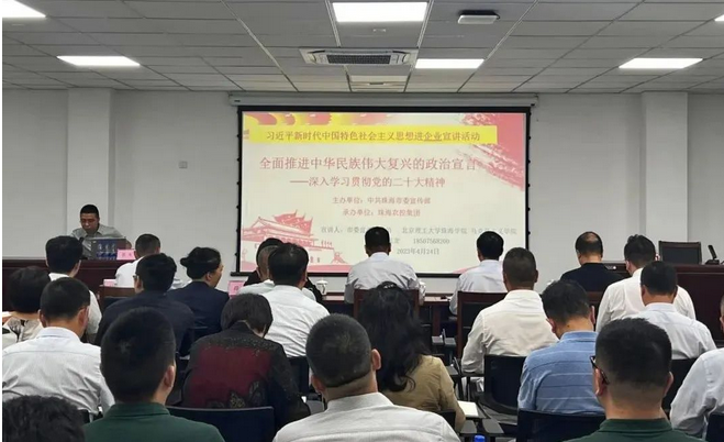 4月24日下午,农控集团党委邀请市委宣讲团成员、北京理工大学珠海学院马克思主义学院院长助理、副教授张龙开展深入学习贯彻党的二十大精神专题宣讲。会议由农控集团党委副书记刘国涛主持。集团党委书记、董事长张凡、党委委员和领导班子成员、各二级企业领导班子成员、各基层党支部书记、集团本部全体党员等参加学习。